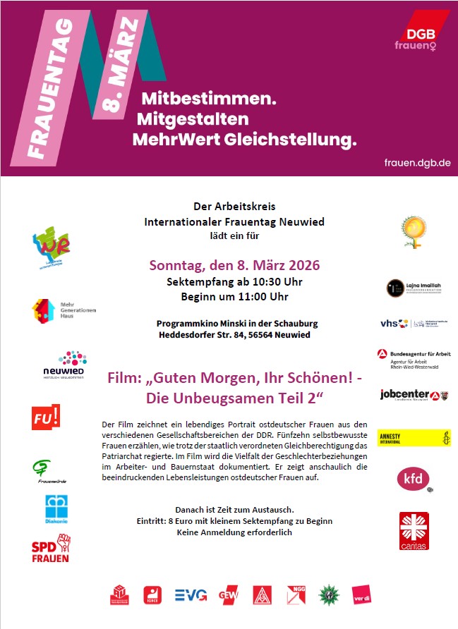 Internationaler Frauentag 08.03.202621. Januar 2026/in Allgemein/von Natalie Hamann https://mgh-neuwied.de/wp-content/uploads/2021/02/MGH_Logo_2020_RGB-300x105.jpg 0 0 Natalie Hamann https://mgh-neuwied.de/wp-content/uploads/2021/02/MGH_Logo_2020_RGB-300x105.jpg Natalie Hamann2026-01-21 08:40:172026-01-21 08:40:19Internationaler Frauentag 08.03.2026